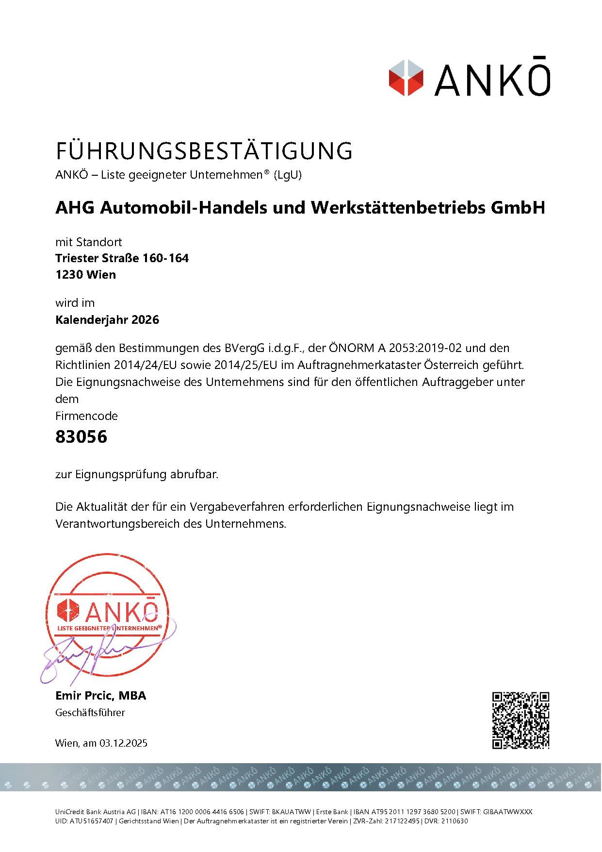 Führungszertifikat des Auftragnehmerkataster (ANKÖ)
